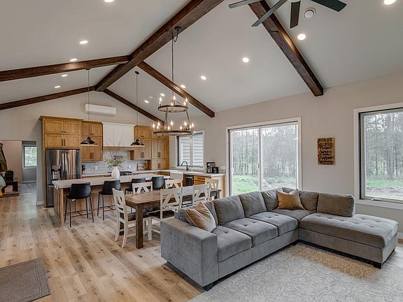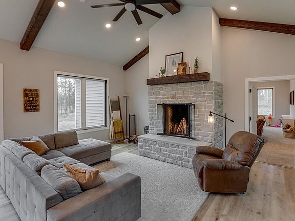 Step into this exquisite custom built, single-level home just minutes from downtown Pequot Lakes. Situated on 3.31 acres, this home features 4 BRs and 2.5 baths functionally designed with a spacious and private master ensuite. The open-concept floor plan features vaulted/beamed ceilings throughout the kitchen/dining/great room and vaulted ceilings throughout the master ensuite and family room. The kitchen features custom concrete countertops, large center island, Amish Alder wood cabinets, and high-end finishes. Expansive windows allow for generous amounts of natural light. Stay comfortable with zoned in-floor heat throughout and multi-zone mini-splits. A stunning wood burning fireplace is a focal centerpiece and pleasing to cozy up to on those cold winter days. The family room offers a spacious retreat for both relaxation and entertainment. This location offers a perfect balance of accessibility, convenience, and privacy. This beautiful one-level home is a must see!