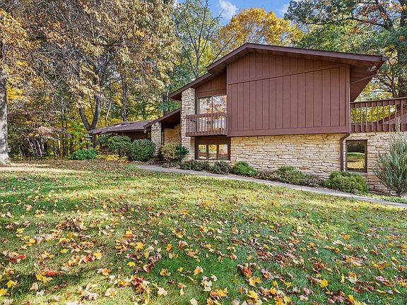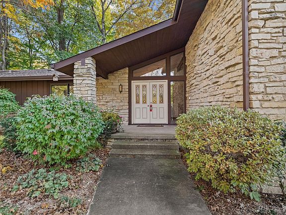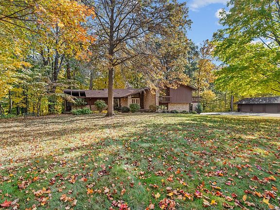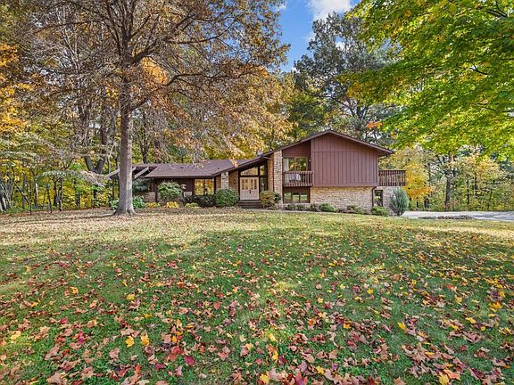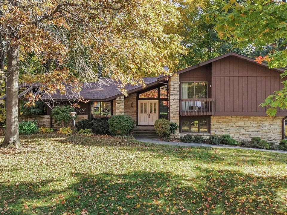 Captivating at first sight. Highly sought after multi-level design is a stunner. Every spare inch is used for closets and built-ins. Featuring two full stone Wisconsin Cascade stone fireplaces, 4 to 5 bedrooms, 4 baths and a 2nd rec room. Floor to ceiling windows and 3 decks look out over a running creek nestled in wooded splendor. Relax on the screened porch in absolute privacy. Everyone has space here. There is even a workshop room that has its own outdoor entrance and an extra 3 car plus garage. Pipe line edges on the NW corner of the lot on an angle. It's not near the driveway. This is a meticulously cared for home. Scenic 4.5 acres in Jackson Township. Duneland Schools. FIRST TIME OFFERING.