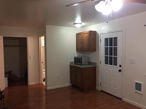 Detached room for rent, nestled in the trees behind the main duplex. Approx. 300 sq ft. The unit has a bedroom/living area, closet, and full bathroom. It does not have a full kitchen. It has a small countertop, lower and upper cabinet, refrigerator, microwave, and outside tub sink but it does not have a kitchen sink, range/oven or garbage disposal. Therefore cooking is limited to microwave, toaster over, hot pot, and outdoor BBQ. It has hardwood flooring throughout, and a ceiling fan. The unit sits in a quiet backyard with redwood decking, and mature trees and shade. One parking space in driveway. Convenient location with easy freeway access, and close to Japantown area. Rent is $1,200/mo, plus $50/mo for water and garbage. Tenant pays PG&E and cable / internet. Lease term is 12 months then month-to-month. No smoking. No pets.