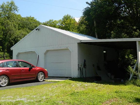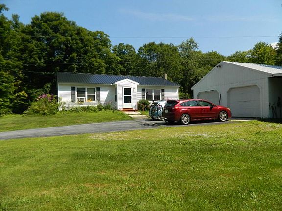 This two-bedroom Ranch on 11 acres has a 3/4 bath, first-floor laundry, open-concept eat-in kitchen, and dining room. The oversized living room has large windows facing the back fields. Basement includes a partially finished room and plenty of storage space. A two-car oversized garage with additional carport/shed is attached. Beautifully landscaped with perennials and mature trees and a back deck overlooking the field. Updates include a metal roof, new well and carpet.