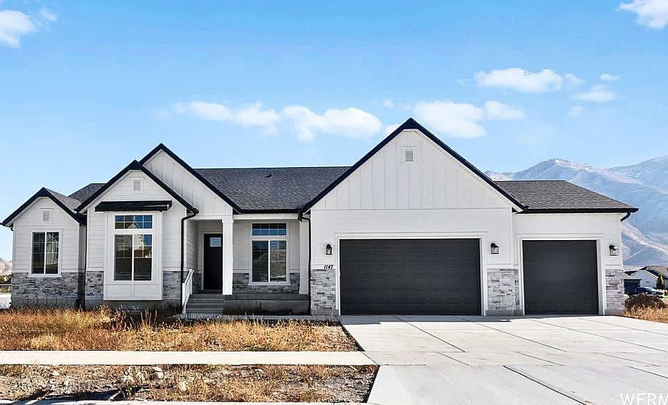 Offered here is a beautiful west facing rambler on .34 acres in the Whiting Cove neighborhood of Mapleton! Come live in this 7 bedroom and 4 bathroom home with vaulted ceilings throughout. This home was adorned with many builder upgrades and features a large primary bathroom, walk in closet, mudroom lockers, and a third bay garage. In the kitchen is a huge pantry and a 9' island with quartz counters, soft close cabinets, and a beautiful tile back-splash to complete the elegance. This home boasts nine-foot tall ceilings on the main level and in the basement for that extra spacious feeling. Daylight basement for ample lighting downstairs. Quartz counter tops and under-mount sinks throughout, laminate flooring also throughout, 12"x24" tile in bathrooms, Euro-glass primary shower enclosure, Shaker-style cabinets in kitchen and baths, 9' tall second and third bay garage doors, and a 42" gas fireplace in the living room. Make this beautiful home yours! Note from Jason: I was looking to purchase this direct from the builder as an investment property, but things didn't work out for me and I had to back out of our deal. Please contact Jessica Pacaro with Arive Homes to see if this great property is still available. Her contact information is (702) 495-3936 and jessicap@arivehomes.com.
