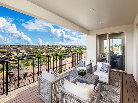 Here is your dream home in the beautiful new neighborhood of Solstice Ridge II at Prescott Lakes. This gated community offers a private golf course, rec center with pickle ball courts, indoor pool, outdoor pool and world class fitness center! This gorgeous new home offers 2,544 sq. ft. with 3 bedrooms plus a den/office. 3 car garage. Luxury features throughout with an open floor plan, gourmet kitchen with stainless steel Bosch appliances, spacious primary suite with his and her walk-in closets. Large private deck with amazing views., Beautiful Modern Farmhouse elevation with stone accents.