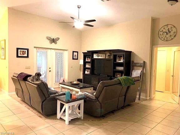 Only house for sale with two master suites for less than $415,000 in the entire 33991 zip code! The best part is -- both are on the first floor (no stairs to either master). In fact, all three bedrooms have their own en suite bathroom plus an additional half bath for guests. When you walk up to the house, there's a huge, screened front entry -- perfect for catching views of the sunrise in the mornings. Inside, there are high ceilings, tile floors throughout, an open view from the kitchen to the living room, indoor (air conditioned) laundry, and more. Whether you need a nursery or an office, there is a perfectly-sized den attached to one of the master suites. In the backyard, there is still plenty of room to add a pool. The house is perfectly situated east of Chiquita Blvd and south of Pine Island Rd. with everything it has to offer. There's restaurants, grocery stores, shopping, churches, a sports complex, activities and more within just minutes. Hurricane protection is provided, as there are metal shutters for doors and windows and bars reinforcing the garage door. It's in Flood Zone X -- meaning no mandatory lender-required flood insurance!