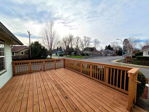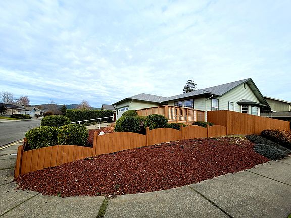 Location, location! This corner beauty is low maintenance, all fenced and a walk away from the All Sports Park for walks and the Rogue River! This open Floorplan home has a spacious living room with kitchen and dining. Large walk in pantry, covered backyard patio with views of the mountains. Indoor laundry with lots of shelving. Spacious master bedroom with walk in closet, bathroom and a slider to your covered patio. Enjoy the open patio out front or covered in back. Lots of street parking for guests with sidewalks. Ready for move in with lots of furniture that stays. See this one before I'm gone. All information deemed accurate but not guaranteed and subject to change at any time.
