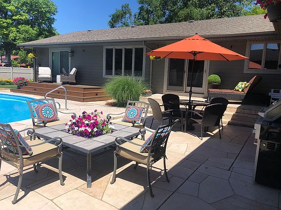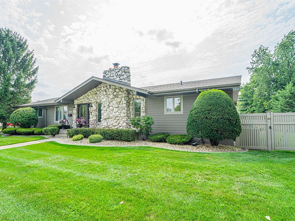 Sprawling 4200sq.ft., 3 Bedroom/2 Bath Ranch home w/ Finished Basement sits on the corner of Tulip & Southwood. LOW MAINTENANCE HARDIE BOARD EXTERIOR & VINYL FENCE (2008). Meticulous Sellers have thoughtfully maintained & upgraded this Home: 2008 NEW ANDERSON WINDOWS/PATIO DOORS, FURNACE. 2012 NEW A/C. 2016 NEW ROOF. 2018 NEW POOL HEATER, TREX DECKS. 2019 REFRESHED INTERIOR W/ UPGRADED MILLWORK, FLOORING & FINISHES. Stunning views from the panel of Lg windows showcasing a clean sight line of a backyard retreat! Inside, Skillfully Designed, Vaulted Ceilings, Open Concept flow from Living Rm, Kitchen, Dining, & a Split Bedroom Layout. Massive White Stone Fireplace. Kitchen W/ Granite Counters, & Full Stainless Appliance pkg. Primary Bedroom has foyer entry, sliding doors to deck/pool, dual closets & Ensuite. Opposite are 2 Lg Bedrms w/ walk-in closets. Super Utility Rm is great for pool use, laundry, & more. Clean, Dry Basement w/ office/4th Bedrm. Lots of storage. WALK TO GREAT SCHOOLS!