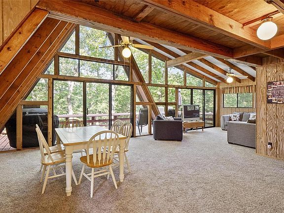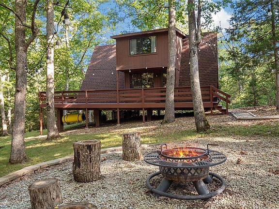 Nestled on a serene 2-acre lot at, this delightful A-frame home offers a perfect blend of rustic charm and modern amenities. Boasting 2 bedrooms, 2 bath and loft area, this property provides a cozy and inviting retreat for those looking to escape the hustle and bustle. Step outside to enjoy the peace and tranquility of your own private oasis, surrounded by lush greenery and the beauty of nature. A new roof is currently being installed, ensuring long-term durability and protection for your investment. The expansive deck is ideal for entertaining or simply relaxing, offering a perfect spot to soak in the serene surroundings. Additional features include a convenient storage shed for all your outdoor equipment and belongings. You have access to a wide range of amenities, including lakes, trails, and recreational facilities, pools, golf making this the perfect year-round retreat or vacation home. Home is rentable and could make a great Air BNB. Roof Replaced October 2024.