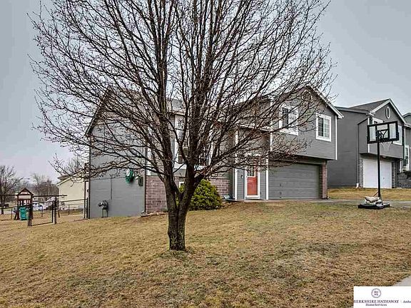 Welcome to this super clean and extremely well maintained three bedroom, two bathroom, multi-level! NEW carpet throughout, NEW exterior and interior paint, UPDATED stainless steel appliances, and lots of natural light featured through the open floor plan and vaulted ceilings. Lower level walkouts to a fully fenced, flat, corner lot, newer playset stays. Oversized garage. Close to shopping, services and Standing Bear Lake, and slated for the new Omaha Public High School in 2022!