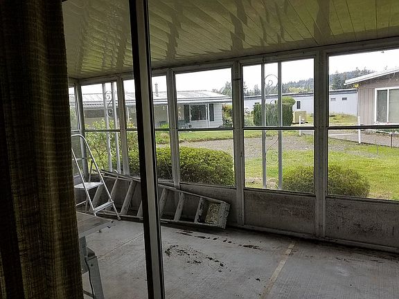 Very Large Home in Top Senior Park. 60 X 24 house with an additional 19 X 9 Sunroom. The living room and dining room are huge and have lots of windows to brighten things up. There is also a large, separate family room which has a sliding glass door to the sunroom. The family room boarders the kitchen. The family room also features a wood stove. There is an excellent rubber roof over the main body of the home, AND over the sunroom. The sunroom has a concrete floor and metal walls; this all helps to prevent rotting and it makes for very usable space. On the opposite side of the house from the sunroom, there is also a large, covered side porch with great views. The furnace is great and there is an A/C unit. The home has some double pane windows and some storm windows. The house has side by side, covered parking making it convenient to have two cars. The lot allows for large gardens if someone wants to have a large garden; otherwise bark dust can cover the ground. There is some fix up to be done to this house (carpets, etc.). It has great potential. Lots of room inside and out. Come make an offer.