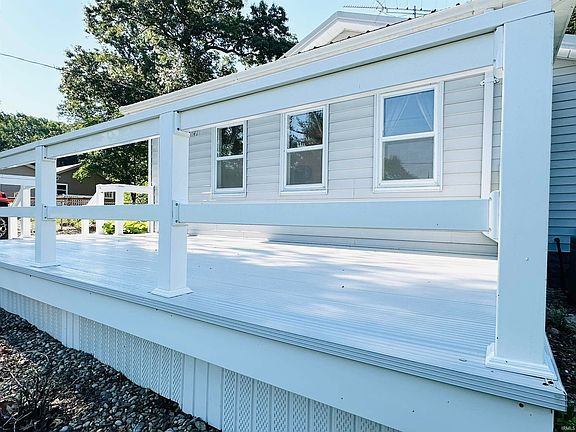 7/1/23 Multiple offers received. Cute 2 Bedroom, 1 bath home near Koontz Lake. Very clean with approx 975 sqft. 100x100 lot. Natural gas heat and central air. 1st floor laundry with washer, dryer, and sink. Eat-in kitchen with appliances. Dining room is open concept to the living room with vinyl plank flooring. Nice 10x20 front deck. Vinyl siding, metal roof, shed/dog house, partially fenced yard, water softener. Partial basement and mostly crawl space. 24x24 detached 2 car garage with opener. Regional sewer system is $60 mo. This would be a great home to use as a rental, or for a first time Buyer, or someone wanting to downsize. Estate-selling as-is. Only Cash or Conventional loans. Call today!