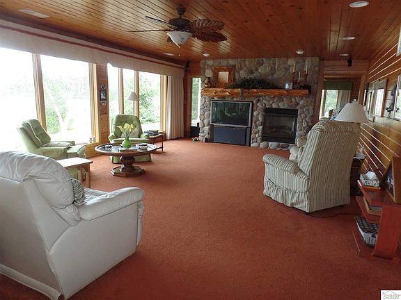 This high-quality, single level, waterfront home sits on one of the most coveted sites on Lake Nebagamon. It is designed to be accessible. The interior is a tasteful mix of wood and sheetrock. Heated with natural gas, it features a very most of the rest of the rooms in the home. There's two fireplaces, one in the living room and one in the master bedroom. The attached garage provides another 1,100 square feet of finished space including a utility room 1/2 bath, and storage closets. Enjoy sitting out on the beach watching the family of eagles nesting in the tall trees on Honeymoon Point. This is a wonderful place for entertaining, and you have a guest cabin for the extra guests who will be staying for a couple of days, or weeks. A bonus is the electronically controlled shades on the large windows. Included in this fabulous package is a dock, and if there are any furnishings in the home a buyer wants, it's all negotiable.open floor plan, with in-floor heat, including in the finished attached garage. The master suite has huge windows providing panoramic views of the lake, as do the living room and the dining room.