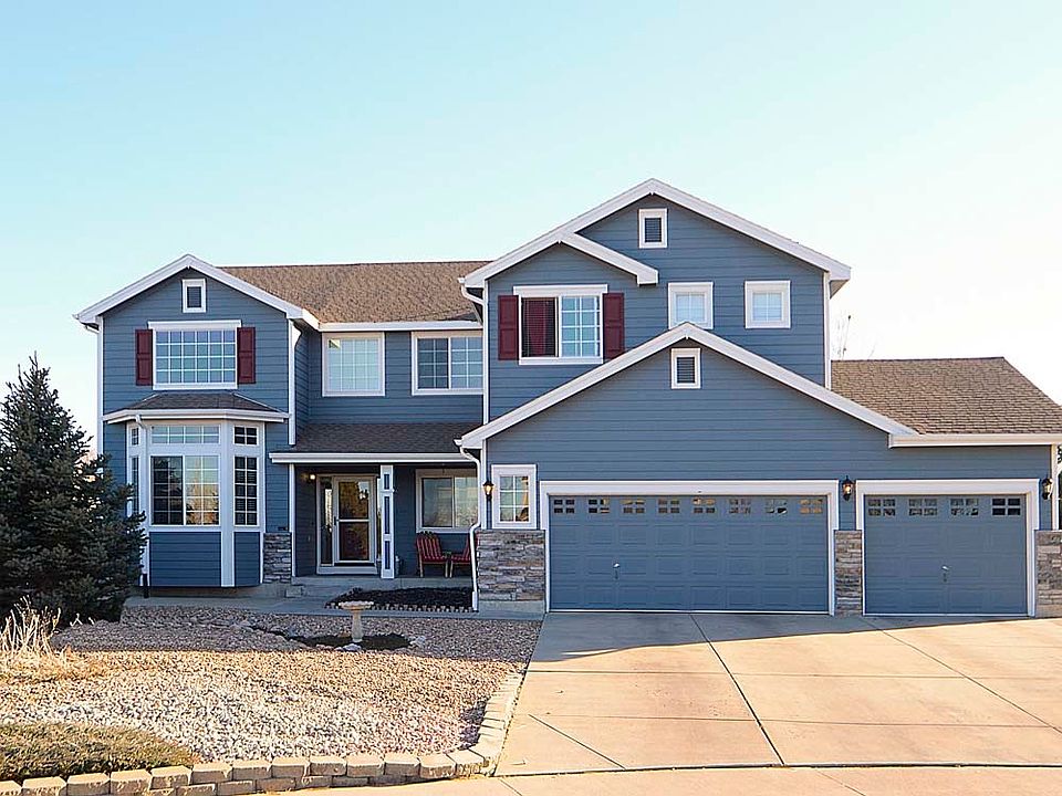 Beautiful home w/finished basement on 1/2 an acre lot at the corner of a cul-de-sac! Entry features hardwood floors and formal living room w/2 story ceilings. Gourmet, eat-in kitchen w/granite counters , double oven, gas cooktop, walk-in pantry, and breakfast bar. Open family room w/custom built-ins and 2-sided fireplace. Also on the main level is a powder room w/marble tile and large study w/French door entry, bay windows, built-in shelving and fireplace. Upstairs is a large loft and 4 beds. The vaulted master features bay windows, ceiling fan, 5-pc marble tile bath and walk-in closet. One secondary bedroom includes a full bath and walk-in closet. 3rd full bath in hallway. Bsmt w/spacious rec room and a 5th bed/bath. Beautifully landscaped backyard w/covered trex deck, garden, pergola, utility shed and playground! Newer exterior paint, newer furnace, water softener and security system. Just a block from the park and walking distance to elementary school. Easy access to major routes.