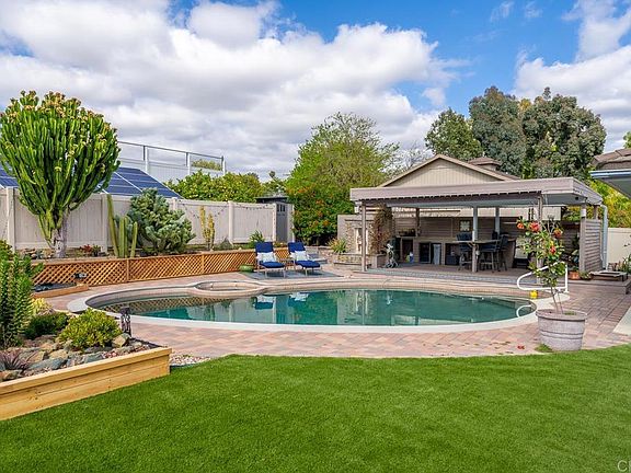 Welcome to your dream oasis! Nestled on an expansive 16,000+ square foot flat lot, this single-level estate offers the epitome of luxury living with its resort-style backyard and stunning interior features. Step inside to discover a freshly renovated haven, boasting brand-new flooring and paint throughout. The heart of the home showcases an amazing kitchen with custom cabinetry and high end appliances. that not only caters to culinary excellence but also offers breathtaking views of the surrounding landscape. This meticulously designed residence comprises three spacious bedrooms and two bathrooms, with the added bonus of a tastefully executed addition off the living room. This versatile space could serve as a fourth bedroom, a dedicated home office, a private workout area, or any other creative space to suit your lifestyle needs. Prepare to be captivated by the outdoor sanctuary awaiting just beyond the threshold. Perfect for hosting gatherings or simply unwinding in style, the entertainer's backyard beckons with its magnificent pool, inviting cabana, and a built-in outdoor BBQ area ideal for summer dining. Behind the outdoor patio is a conveniently built in outdoor shower as well. Embrace sustainable living with 40 owned solar panels discreetly nestled in the backyard, effortlessly offsetting your energy bill while minimizing your carbon footprint. The allure of this property extends beyond its exceptional amenities, with fully mature orange and lemon trees gracing the grounds, providing a delightful ambiance and a source of fresh produce. Experience peace of mind knowing that this residence has been enhanced with newly landscaped grounds, new sewage plumbing throughout, and numerous other updates, ensuring a turnkey lifestyle for its fortunate new owners. Seize the opportunity to make this entertainer's delight your own, where every day feels like a vacation in paradise. Don't miss out on the chance to call this remarkable property home!