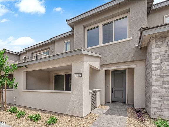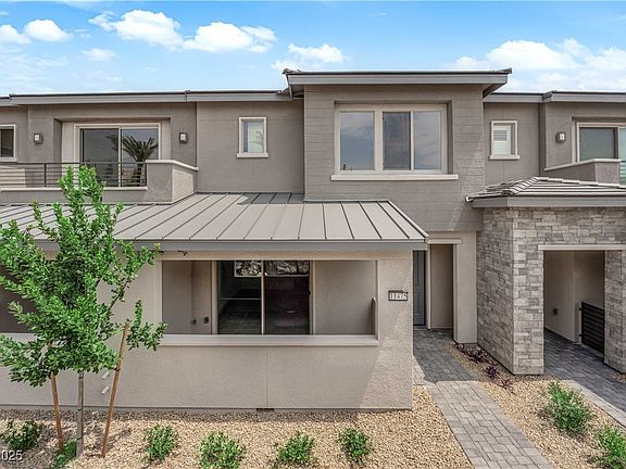 Monument at Reverence is Pulte's newest townhome community situated in west Summerlin. The community is elevated above the Las Vegas valley with nearby outdoor amenities. This Cornwall floorplan offers a desirable rooftop deck with incredible views, as well as a full length driveway. The home also includes comfortable and convenient features designed to fit your lifestyle needs. The spacious gathering room, open café and covered patio make this floorplan perfect for guests and extra entertainment. This Pulte home boasts numerous design features including a chef's kitchen layout, modern white shaker cabinets, 8 foot interior doors and added electrical options. Complete with a 10-year limited structural warranty and constructed from premium building materials, this home delivers quality and peace of mind. Seller to contribute toward closing costs with preferred lender.