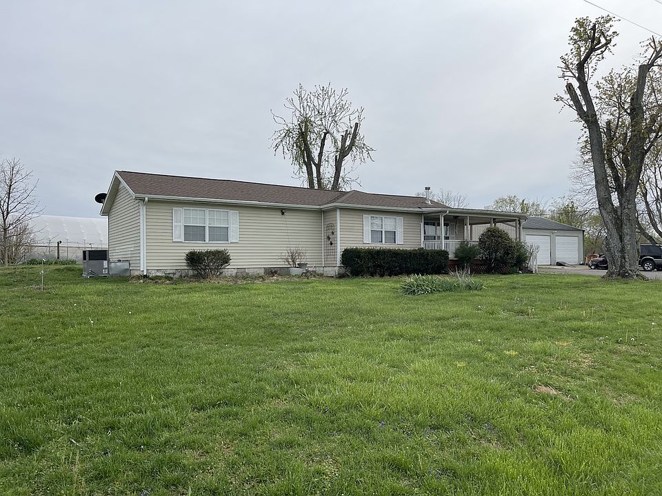 Newly installed roof and siding. Freshly painted home w/lots of charm. Country view and scenery to enjoy on your covered wrap around deck. Detached double garage doors w/ ample storage. Stunning ranch w/slight renovations. Open floor plan, master suite w/2 walk-in-closets, luxurious jacuzzi tub/separate shower, dual vanity. Rear of the house is a farm green house.