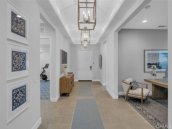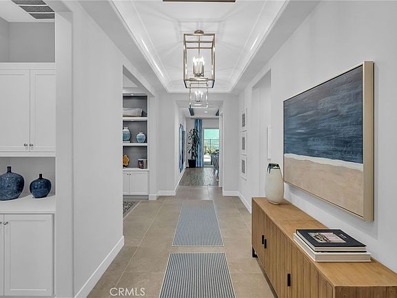 This stunning plan 3 previous model home at Terramor boast truly incredible views of the Cleveland National Forest from the well thought out back yard design with outdoor kitchen ready for entertaining and enticing in ground spa ready to enjoy! Soaring 10’ ceilings are throughout the home with a large 16x18 stacking door to the expansive California room with fireplace, which offers the indoor outdoor living. The home has a 2 car garage plus a golf cart garage. The gourmet kitchen has a large upgraded kitchen island with gorgeous Azul Aran Granite with the perimeter counter top in Bianco Statuario quartz and custom back splash. Upgraded Thermador appliances really put the finishing touch on this custom kitchen. Spacious primary suite has amazing views of the mountains, and the bath is finished in upgraded quartz countertops and a large shower with custom Glass and stone mosaic tile.