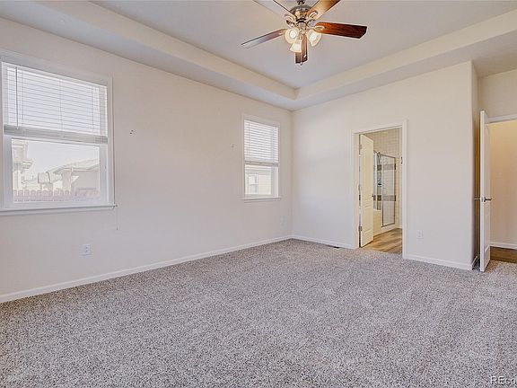 Built-in 2016, this Commerce City two-story offers a fireplace, kitchen granite countertops, master bathroom granite vanity, and a two-car garage.