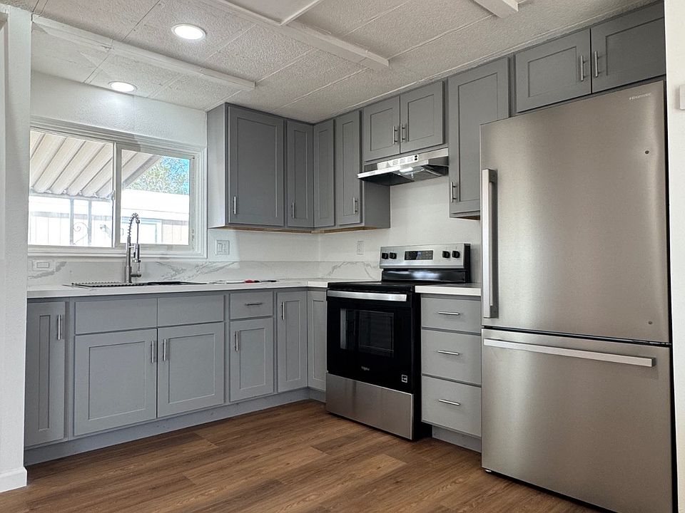 Quality finishesSleek stainless steel appliancesGorgeous quartz countertopsLuxury soft-close cabinetsModern kitchenAll-new vinyl flooring