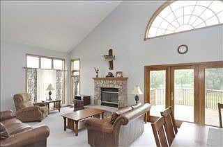 Beautiful contempory home conveniently located minutes north of Grand Rapids, on peaceful Sandy bottom lake with over 130ft. of private beachfront. The home has over 2800 sq. ft. of living space overlooking the lake. Full story and a half with finsihed walk out basement with stone fire place in family room and a bedroom with a full bath. Basement could easily be converted into an apartment. Open great room facing lake with large windows to enjoy the sun all day, natural gas fireplace, cathedral ceilings and open oak staircase to upper level bedrooms and full bath with sky-lite and tile floor. This home has four bedrooms total, including a master suite with oak french doors leading to main living area, a bath for two with a double marble sink and sky-lites, enjoy the sun or stars in the 2 person jacuzzi tub, or from the sliding door off the sunny front deck over looking lake. Main floor laundry with oak cabinets and tile floor between 2 stall garage and kitchen with breakfeast nook, oak cabinetry and tile floor. All appliances included with option to buy other furnishings. SHOWN BY APPOINTMENT ONLYAdditional property info: http://www.forsalebyowner.com/listing/4-bed-Single-Family-home-for-sale-by-owner-11475-Sandy-Bottom/22804710?provider_id=28079