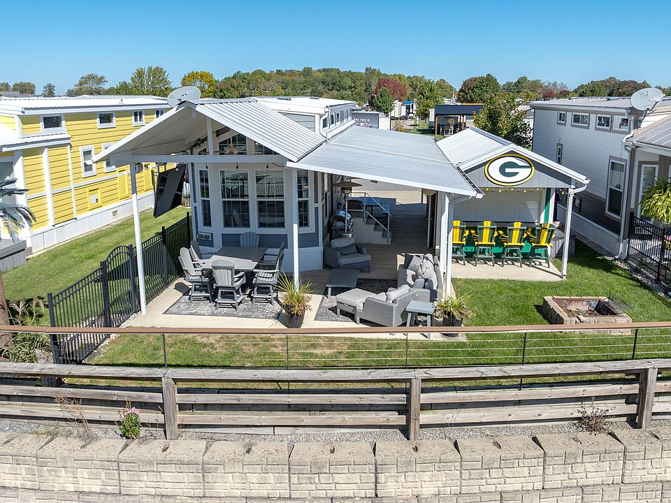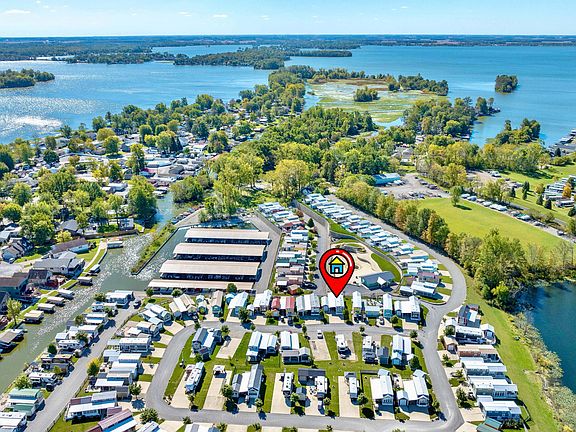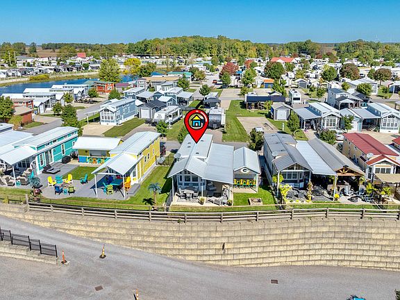 Fully furnished park model at Logan Landing! Built in 2016, this home features one bedroom with plenty of built-in storage, super loft with a queen & full bed, spacious kitchen with connecting living room, & three water filtration systems. All interior furnishings stay (except TV)! Outside has an oversized covered patio with scenic views of the pond & waterfall, a partially fenced-in yard, & fire pit. The golf cart shed features storage space in the front & a great party shed in the back! All exterior furnishings stay including the furniture, electric lawn mower, fridge, freezer, DirecTV dish & over $10K in outdoor TVs/audio equipment. Located in close proximity to the playground, ponds, family pond, shelter house & volleyball courts. Lot rent $3550/year & covered through the 2025 season!