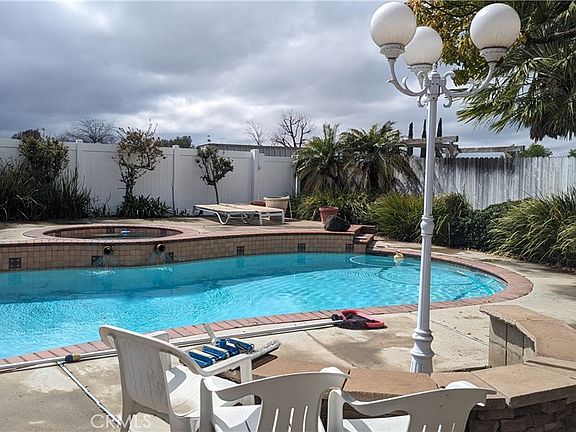 Features 3 bedrooms, bonus room with closet and 1/2 bath. Can be a 4th bedroom. In ground swimming pool, fenced, landscaped with a lot of brick work, great area for gatherings. Perfect on this half acre to build an ADU, shop or just RV parking. Riding trails, two Arenas and close to community parks. Elementary school in tract.