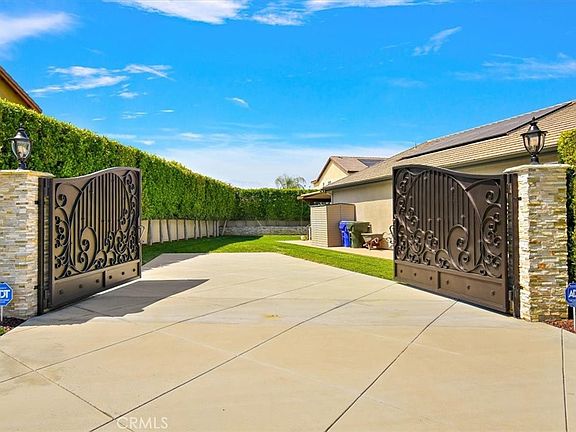 RANCHO DEL SOL SINGLE STORY- Situated in a coveted neighborhood on a cul-de-sac this beautiful single story features 3 bedrooms, 2 bathrooms with approx. 1,952 Sq Ft of living space. As you drive up, you will be greeted with a sprawling premium lot that offers several upgrades including synthetic turf front yard, separate driveway for your RV or Boat with spectacular gates leading to the backyard and custom garage door. The floorpan features three bedrooms all with upgraded raised panel doors and closets with carpet and shutters. The master bedroom suite has a private bathroom with walk in closet and dual sink vanity, large tub and walk-in shower. There is a large washer/dryer area with lots of storage. The dining room offers space for a family sized table for entertaining and gatherings. The kitchen features a long island with granite counter tops, double ovens, rich dark wood cabinets, 5 burner gas stove top and walk in pantry. The family room offers recessed lighting and fireplace TV setting. The backyard has been extensively updated (over $100K in updates) with large covered aluminum patio cover and pavers, retaining wall, custom pull down shades, TV for BBQ gatherings and grassy area with mature trees for privacy. The home has solar on paid program and tankless water heater. Schedule a tour today to see this home!