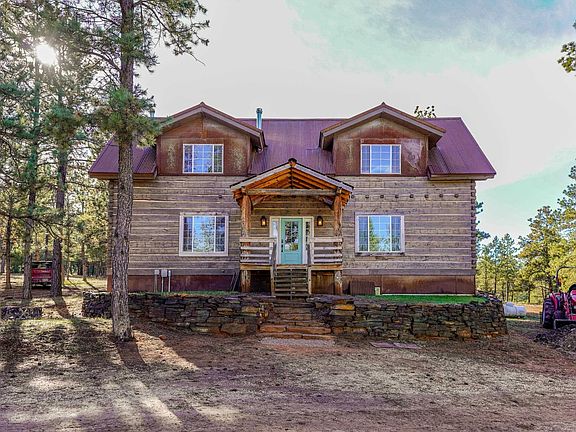 LOTS TO BRAG ABOUT WITH THIS ONE! Gleaming 1.5 story square log home on 10 serene, wooded acres. Soaring, wood-beamed vaulted ceiling and a cozy wood-burning stove, French doors leading out to the backyard & striking laminate wood flooring extending into a chef's delight of an eat-in kitchen, showcasing an enormous center island, heaps of cabinets, tile backsplash & stainless steel appliances (including a double oven & range hood). Adorned with wood plank walls & handy half bath rounding off the main level. Expansive loft hosts a sitting area showing off an aerial view of the main level living room below. Huge upper level master bedroom with full private bathroom, highlighting an oversized walk-in tile shower, jetted tub, basin sink, and water closet. The sprawling basement houses a family room with wood-burning stove, 2 more bedrooms, office/non-conforming 4th bedroom, full bathroom, and laundry room. Attached 2-stall garage, lovely covered front stoop, fenced-in chicken coop, additional structure ready for a handyperson to transform the space. Tucked away in a perfect rural setting halfway in between Custer and Hot Springs. Home does need a little TLC and is just waiting for your finishing touches.