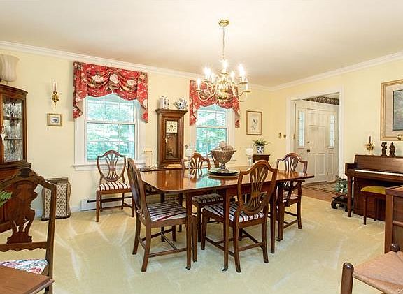 Perfectly maintained, remodeled & updated colonial offers village atmosphere situated a short distance from library,post office, market, sports park & community center. Recent upgrades, include new roof, windows, Hardy Plank siding, granite countertops in kitchen & powder room, insulation, new tile flooring in kitchen & family dining area. 3 season porch offers, views, nature and private time. Basement offers workshop with bench, extra table/storage and freezer. Particular attention has been made to all drainage, footings, and foundation. Owner will leave all kitchen appliances, most window treatments, armoire and most sunroom furniture. Enjoy easy living in the country and a 5 minute commute to major shopping.