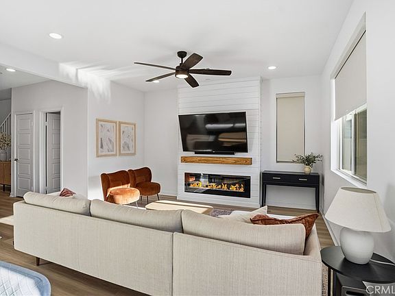 Built in 2022, this light and modern home blends comfort, technology, and style. The open-concept layout features upgraded luxury vinyl plank flooring, a sleek electric fireplace, and a spacious kitchen with a center island.