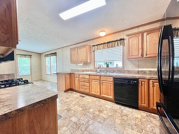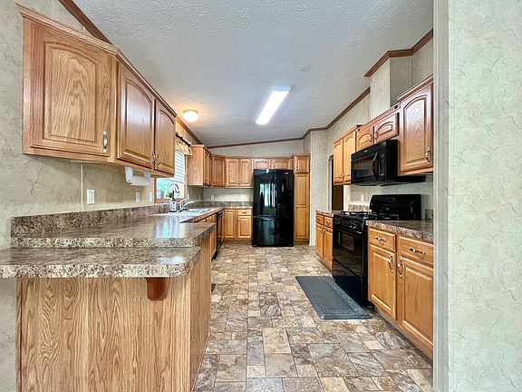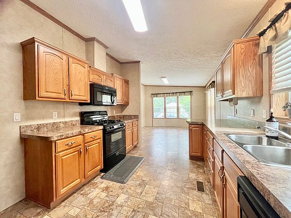 Immaculate, two owner home purchased directly from the factory in 2012. Covered porch with swing, 3 bedrooms, 2 full baths, living room, dining room, spacious kitchen with lots of cabinets/storage/ pull out pantry drawers. Master bedroom has large walk-in closet, huge bathroom with double sinks, vanity area, linen closet, and extra storage unit. New LVP Flooring in living room, hallway and all bedrooms. All appliances stay including washer & dryer. Attached 1-car garage has wheelchair ramp that can be removed. Nice backyard green space. All information believed to be accurate but not warranted. Home is part of an estate and being sold "as is." Application and Approval Required by Mobile Home Park.