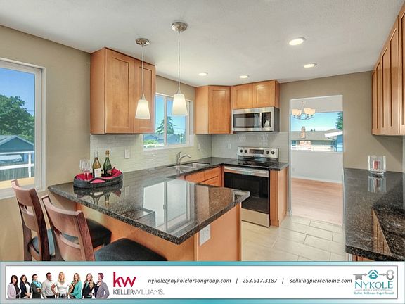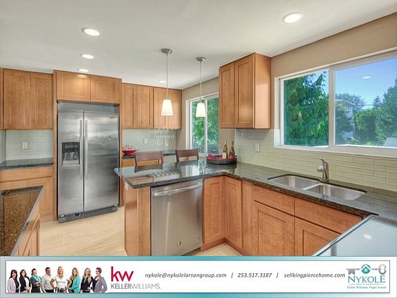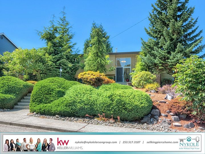 Beautiful 5 bedroom mid-century split level in Edmonds with stunning Sound views and generous .25 acre lot! Mature landscaping, huge deck for relaxing, grilling, entertaining or enjoying the view. Recently updated as well as many original features including two fireplaces, vaulted ceiling and built-ins. Living room & eat-in kitchen, plus dining room, bonus room & enormous family room. Kitchen showcases all new cabinetry, granite counters, full height backsplash, SS appliances & loads of storage.