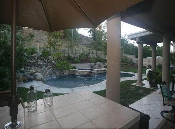 Home comes with a 1yr warranty paid by Seller: Beautiful two story Morningstar built in 2002, Property has a New pool and Spa with a cascading waterfall, that was built last year. Come enjoy outdoor living in this large entertainers back yard with built in BBQ, under a solid roof patio coverings the whole length of the house. Enjoy this private backyard that backs to open space: Fabulous floor plan offers formal living room & dining room w/ Cathedral ceilings. Kitchen w/beautiful granite counters, recessed lighting, & huge walk-in pantry the living room with a view of the pool and waterfall1 bedroom with Full bathroom down-stair, Great location near golf course & Reagan Library.