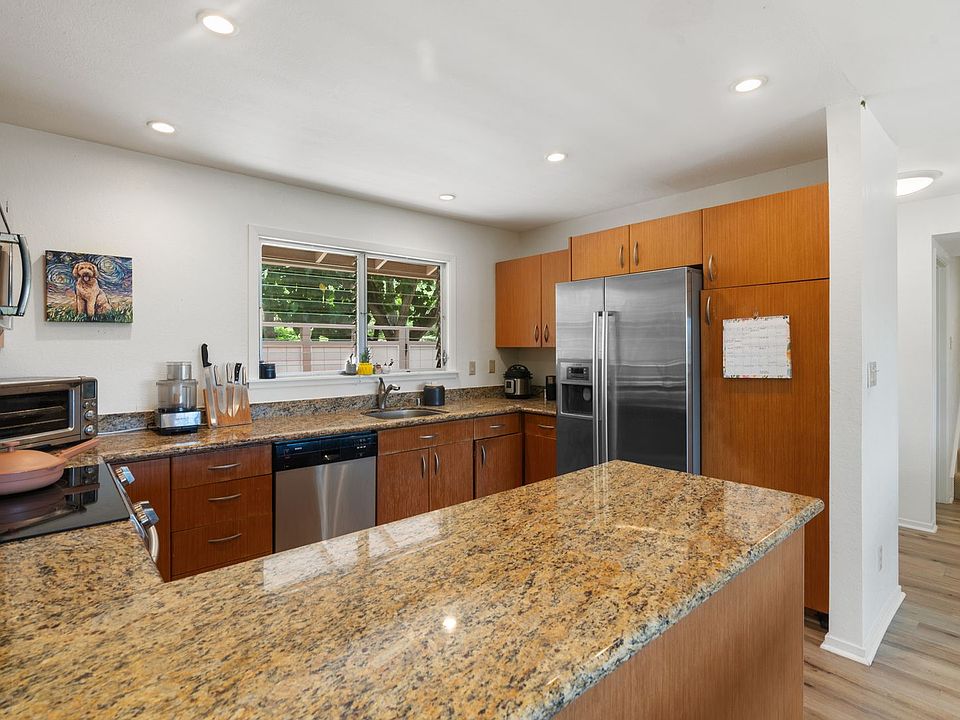 Wake up to breathtaking panoramic views in this beautifully appointed 3-bedroom, 2-bathroom townhome overlooking the lake. Perched perfectly to capture both sunrise and sunset, this residence features a spacious wraparound deck ideal for entertaining, relaxing, or simply soaking in the serene waterfront scenery. Inside, the open-concept living area boasts large windows that flood the space with natural light and showcase the stunning lake view from nearly every angle. The modern kitchen includes updated appliances, ample counter space, and flows seamlessly into the dining and living areas. The primary suite offers direct deck access, a large closet, and an en-suite bathroom with elegant finishes. Two additional bedrooms provide flexible space for guests, an office, or a growing family. Whether you're looking for a peaceful retreat or a year-round residence, this townhome combines comfort, style, and unbeatable lakefront living. Private Homes Hawaii 605 Hamakua Place Kailua HI 96734