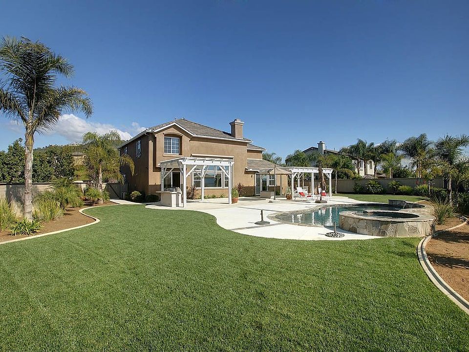 Discover the Allure of SAGE CANYON RANCH. Prestigious Executive family home on .6 Acre CORNER LOT with Southwesterly Panoramic Views & Breezes. The property is your refuge with only 1 Neighbor. Luxurious Pool & Spa ~ Hard to find Downstairs MASTER BEDROOM SUITE (with private access to patio & pool) ~ finely appointed Kitchen with rich dark wood Cabinets, full Granite Eat-in bar & full backsplash, B/I Refrigerator, trash compactor, double oven, Butler Pantry & Wine Cooler. MOVE IN READY. No Bank Hassles!