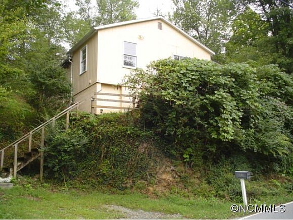 -Affordable updated small farm house with porch, deck, shed, fenced garden, and a long walk up flight of stairs to reach it, but worth the while for privacy, big shade trees and some mountain view across the valley toward the French Broad River and rafting.