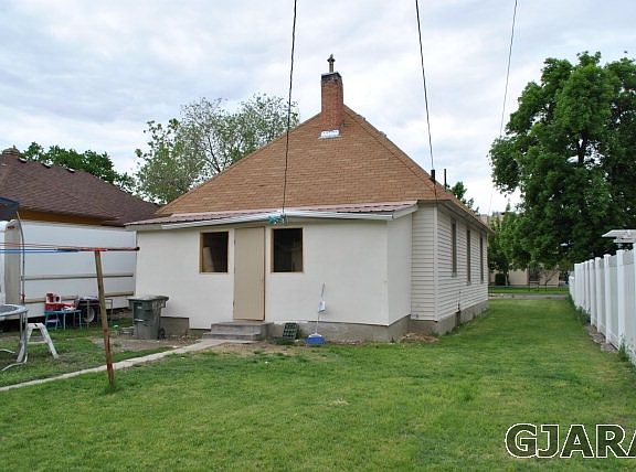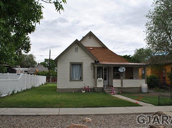 Downtown fixer sold as is. Newer laminate floors in living room & bedrooms. Lots of RV parking with alley access. Front covered porch & enclosed back patio. Large dining room, kitchen & bath need remodeled. Vinyl siding on exterior. Outside entrance to basement. Great for storage. Great location & with some TLC could have great potential. Lot has sprinkler system. May go FHA.