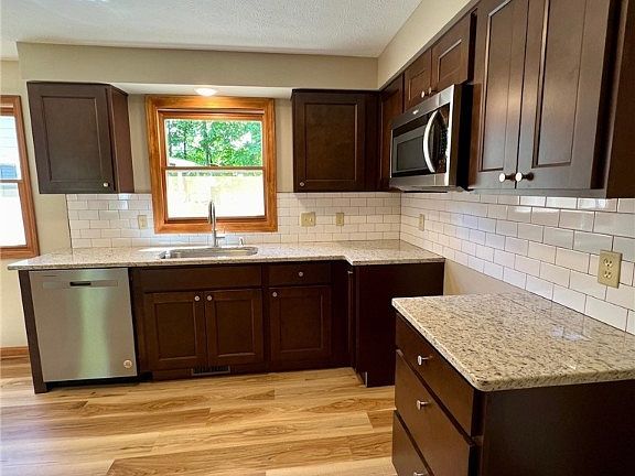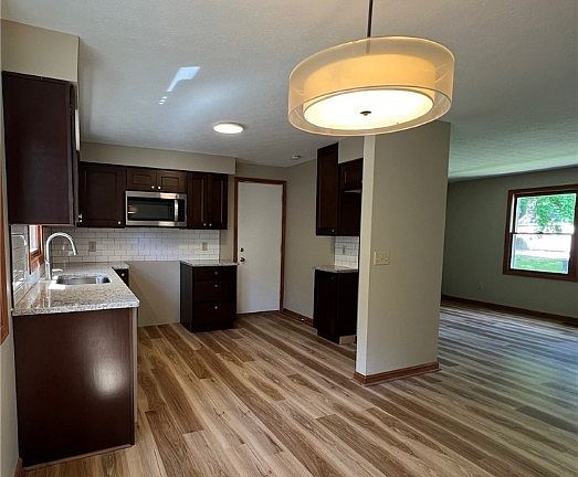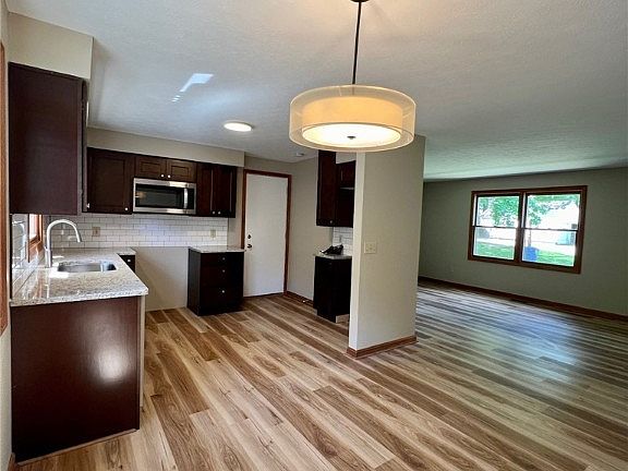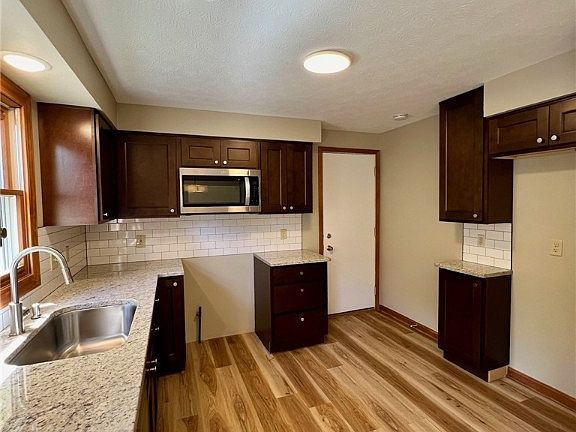 Ranch home in Kent has been updated in 2024 with New kitchen cabinets, New microwave and dishwasher, New granite countertops,