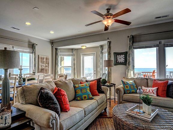 Oceanfront 5 bedroom home comes w/ all the bells & whistles including a community pool & beach access. The interior welcomes you as it is expertly decorated & features 9' ceilings on the main level, beautiful flooring, crown molding & plenty of windows to bring the beach right into your living space. Kitchen includes granite, tile backsplash, SS appliances & a large island, Plus the home has 3 master bedrooms! Decking outside provides ample space on all levels to take in those ocean breezes & sounds. The main deck also has a private hot tub and you'll be sure to love the 4 stop elevator! New In 2019: roof, interior HVAC, paint, flooring,kitchen cabinets, living room furniture. dining table & bunks! This property has been a GREAT rental property w/ $75,358 GRI for 2018. A MUST SEE!