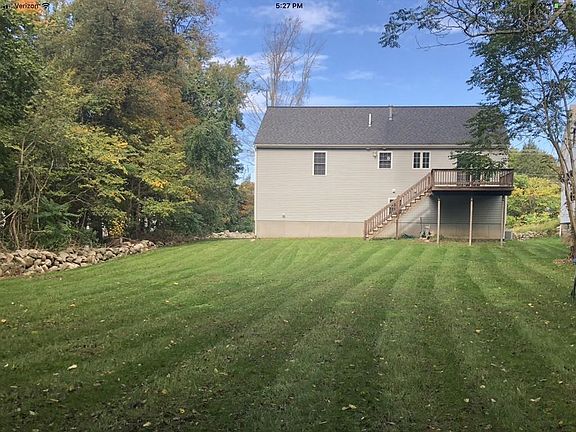 Large raised ranch set back with big front yard on West side. Land on all sides of home, including a sprawling level back yard that neighbors woods and has decorative stone walls. The kitchen has been completely updated with expansive granite counter space and island to match. New cabinets, new disposal, and stainless steel fridge. This neighbors little eat in area with slider access to your deck and backyard. Open floor plan lead to an amazing great room with cathedral ceiling and architectural window that adds the ambiance to the room that will be great for family's and entertaining. 3 bedrooms and 2 full baths on main level. All good size bedrooms with replacement windows and hardwood floors. The master has a bath has dressing area between bedroom and bathroom. Main level also has pull down attic with sub flooring for storage. Head down stairs and you have newly carpeted extra large playroom. Laundry and half bath downstairs as well with deep seated garage access Many updates!!