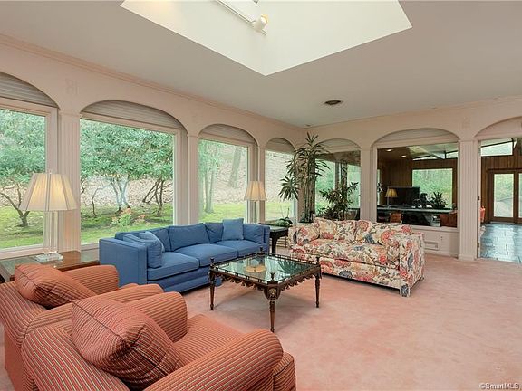 JUST LISTED! AN OUTSTANDING OPPORTUNITY! Calling all nature lovers to this extraordinary mid century modern country retreat on 3.26 private North Stamford acres. Terrific open space both inside and out provides a flexible floorplan. Flawless design and numerous architectural details abound in this 5 bedroom, 3.5 bath home. Prominent features include a gracious front entry, numerous skylights, stereo speakers throughout, walls of windows and massive outdoor terraces and decks. There is a spacious living room and a well-proportioned formal dining room which leads into a bright eat-in kitchen. The show stopping main level family room with fireplace and wet bar is great for entertaining. The finished lower level has a second family room with a wet bar and fireplace. In addition, there is a 5th bedroom/exercise room with a sauna, full bath and a laundry room. Fuel efficient hybrid water tank, central air, two attached and two detached garages. Home has tremendous potential and value. Make this specially priced home your private oasis!