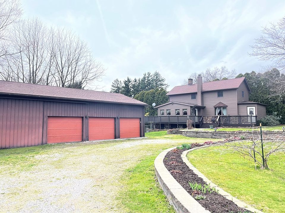 This 2 bedroom farmhouse sits perfectly on almost 10 acres of land. Whether you want to own horses, livestock or just want to farm, this is the property for you. Enter into the newer sun porch area which offers comfortable living space and tons of storage. The kitchen is well equipped with solid oak cabinetry and is adjacent to the large family room with new carpet. The upper level offers two bedrooms and a recently updated bathroom complete with granite countertops. The exterior of the home has been recently updated and offers a wrap-around porch that overlooks the property. The large detached garage has three 10 ft. doors and 1 larger 12 ft. entry door. An additional outbuilding currently being used as a barn includes horse stalls and ample space for livestock. The property includes a coral area, flat grazing space, and beautiful rolling hills which lead to a NATURAL SPRING! Updates include newer Anderson windows, newer roofs on the home and garage and much more.
