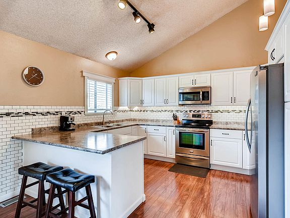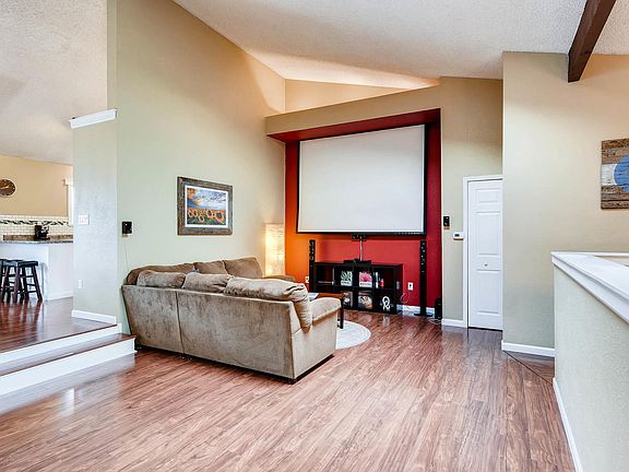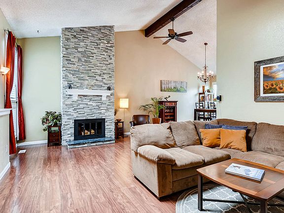 Close enough to Denver, yet offering the tranquility of the suburbs, this wonderful 3 bedroom, 2 bath townhome in Lakewood has modern upgrades and loads of space. Featuring almost 1,600 square feet on two levels, you'll love the vaulted ceilings and skylights that allow natural light to stream into the living area and kitchen. The kitchen has gorgeous stainless steel appliances, scores of counter and cabinet space, and a handy breakfast bar. Relax in the living area in front of the cozy fireplace and enjoy a movie on the large projection screen. The three bedrooms are located on the lower level where there is ample closet space. Enjoy a cookout in the summer in the serene park-like setting off the back stairs. The 2-car garage features built-in shelving and plenty of room for your vehicles, bikes and other toys. It's an easy walk to expansive Belmar Park and a short drive to Belmar shopping, dining and entertainment district.