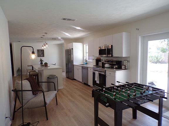 FURNISHED - SHORT TERM 3-bedroom, 2-bathroom POOL home with light and bright open floor plan. The kitchen is complete with large island including barstool area, quartz countertops, single-basin sink, white cabinets, and 2023 stainless steel appliances. The guest bedrooms share the hall bathroom with a shower-tub combo, while the master bathroom boasts a tiled shower. Passing through the kitchen you will find the spacious laundry room with ample closet space for all your storage needs. The floors are decked with waterproof luxury vinyl plank. The large, private backyard is securely FENCED in, providing a haven of tranquility and seclusion. AVAILABLE JANUARY 4TH THROUGH 2026 - $4800 A MONTH... PETS ALLOWED!!