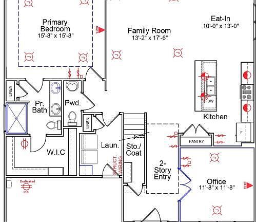 - Master Downstairs, Walk-in Closet(s), Tray Ceiling(s), High Ceilings, Entrance Foyer, Solid Surface, Kitchen Island, Ceiling Fan(s), Pantry, Walk-in Shower, Gas Log, Walk-In Closet(s)