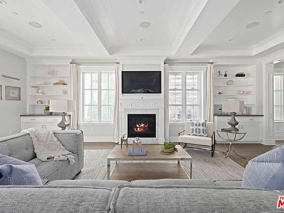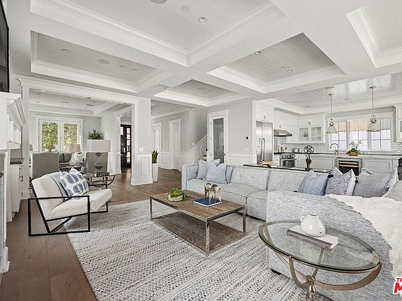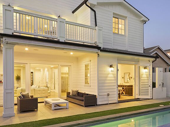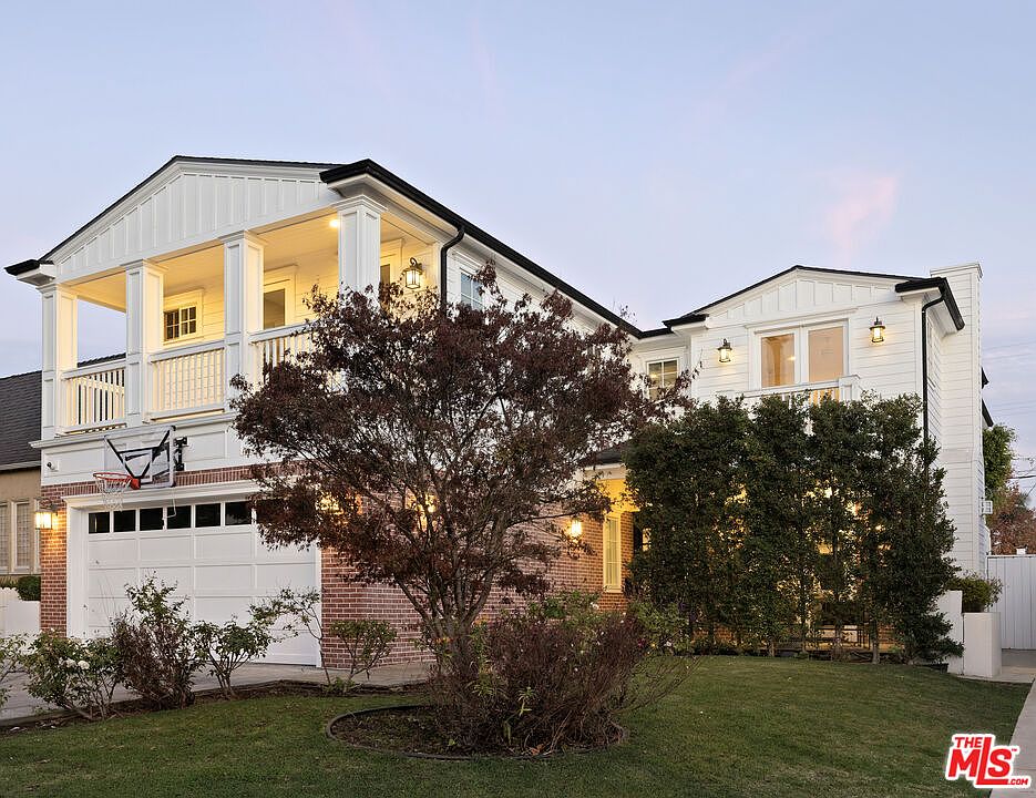 Discover timeless elegance in this newer 2015 Hampton-style home, perfectly situated in the heart of Carthay Square. 4 bedrooms upstairs and 5th bedroom down. Boasting a harmonious blend of classic design and modern amenities, this home is ideal for those who value sophistication and comfort. The open floor plan features natural light throughout, high ceilings, and custom millwork, creating an inviting atmosphere for gatherings or quiet evenings. The chef's kitchen is equipped with top of the line appliances including 2 sinks, 2 dishwashers, large center island, custom cabinetry, and seamless indoor outdoor flow. The primary suite is a sanctuary of elegance, featuring vaulted ceilings, a cozy fireplace and two walk in closets. Step out onto the private deck to enjoy quiet private time. The spa-like bathroom offers a tub, oversized shower and dual vanities, creating a perfect retreat. Additional 3 generously sized bedrooms complete the upstairs. Generously sized bedrooms provide privacy and relaxation, while bathrooms feature luxurious finishes and thoughtful design. The backyard offers a new swimming pool and grassy area for play. Enjoy dining al fresco on the patio with a retractable awning, grilling on the built-in barbecue, or lounging by the poolside in ultimate comfort including an outside shower. Nestled in the sought after Carthay Square neighborhood, enjoy close proximity to shopping, dining, entertainment, and cultural landmarks. This home embodies effortless sophistication and is ready to be your home in time for the New Year. Direct entrance into the home from the 2 car garage with abundance of built-in storage. Solar panels included.