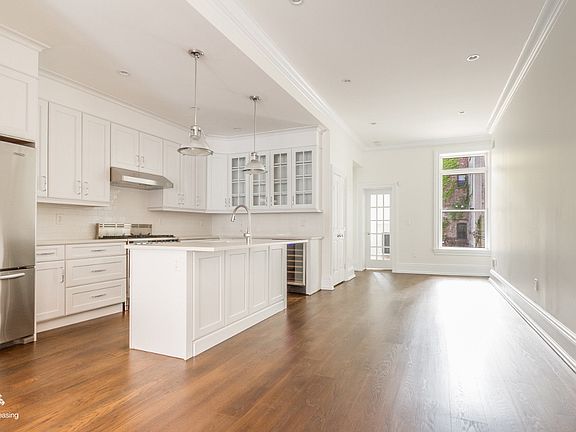 NO FEE + 1 MO FREE! Please include your phone number when inquiring about this listing. Exceptionally located, this gorgeous brownstone renovation boasts a bevy of luxurious amenities and a palatial master suite, revealing a private roof terrace. Remarkably finished, the grand parlor floor presents an expansive open-concept floorplan from the sundrenched living room, through to the amenity-rich kitchen, excellent for hosting family feasts. Immediately upon entry, ornate crown moldings stun as you journey across white oak hardwood floors to the spacious dining room and kitchen. The kitchen features Caesarstone quartz countertops, a sleek subway tile backsplash, ample custom cabinetry, and top-of-the-line stainless steel appliances, including a gas range + hood, refrigerator, dishwasher, and wine cooler. Nearby, you'll find a naturally-lit bedroom outfitted with a built-in closet, while an adjacent full bath showcases a chic vanity and tile floors. An oversized skylight illuminates your travels to the second floor where you'll discover your master suite oasis. Outfitted with endless storage and three large windows that beckon natural light, the spacious master bedroom also features a full en-suite bath and direct access to a private roof terrace, an ideal combo for your own at-home spa. Nearby, you'll enjoy an additional sun-lit bedroom, offering plenty of space, a walk-in-closet, and an en-suite bath. An adjacent cozy den and nearby Whirlpool washer + dryer complete the home. An excellent location leaves you amidst a variety of desirable outdoor amenities, including St. John's Park and Brower Park. Enjoy a delicious meal at several restaurants the neighborhood has to offer, such as Barboncino Pizza and Cafe Rue Dix. You'll have convenient access to an abundance of transportation options, including the Nostrand Ave LIRR station and subway stations servicing the 2,3,4,5 trains. Gross Rent: $4,905 Net Effective Rent: $4,495 (1 month free on a 12-month lease) WANT TO SEE EVEN MORE? We have homes for rent in a variety of sizes, layouts, and price points. Neighborhoods include: Park Slope / Cobble Hill / Clinton Hill / Fort Greene / Bed Stuy / Bushwick / Williamsburg / Crown Heights / Harlem / Weehawken / Jersey City (and more!) - 24/7 assistance - Pets allowed (Breed and weight restrictions apply, one-time fee varies by breed and weight.) - Best Applicant Policy Viewings available 7 days a week.