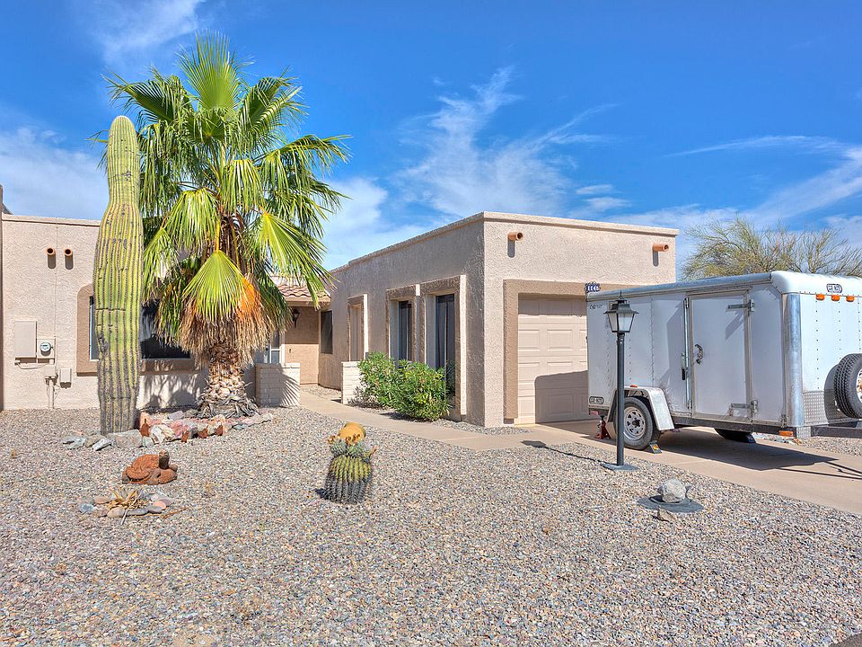 * Delightful 2 bd, 2 ba home in Desert Hills 2. One car garage. Well maintained. Corner lot next to guest parking and large common area. Painted inside and out in last couple of years. HVAC replaced 2016. Bryant unit installed by Green Valley Heating and Cooling. roof recoated 3 years out. Termite warranty with Bill's Home Service. Home comes fully furnished and move in ready!!! Home Warranty furnished also. both baths with nicely tiled walk in showers. Lovely mountain views from dining area window/ and front yard. Eat in kitchen. Excellent location near Desert Hills GVR Center, Elks and much more. Don't miss this one. Just bring your personal items and move right in or excellent rental.