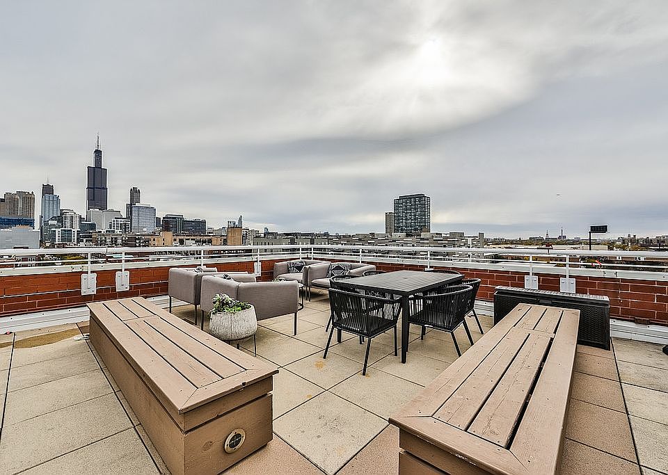 Imagine living in the middle of it all in Chicago's wonderful West Loop neighborhood. This residence exudes a cool sophistication and has been impeccably maintained and updated. The open floor plan provides great entertaining space with a deck off the living room that further expands the area. The fireplace is the focal point of the living/dining area and the kitchen, which is very spacious, is gorgeous in every detail and is a chef's dream. The expansive master suite is airy and bright and features a large walk-in closet and a chic spa bath. This 5th floor home is in the premier southeast corner tier, offering sweeping views south and east over the dramatic city skyline. There is a dedicated rooftop deck that also is in the SE corner of the building, presenting more great views of the neighborhood and the city. The garage parking space is extra long, allowing for additional storage space, also unique to this unit. This small boutique building is thoughtfully designed, well-maintained and features an elevator. Walk to work or take advantage of numerous public transportation options and expressways to easily get wherever you need to go. Wander the neighborhood any time of the day or night to experience the best of city restaurants, retail, nightlife and more. Pet friendly. WELCOME HOME!