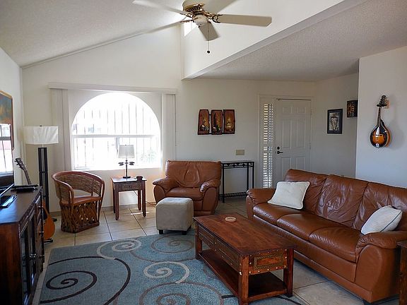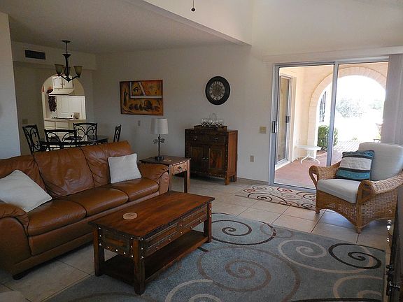 Are you looking for a view? This is the home for you! Enjoy panoramic views inside and outside. This end unit townhouse located in Desert Hills III, Green Valley, AZ has a natural desert on two sides and views from Tubac to Tucson! The private outside covered patio has beautiful landscaping with several areas for enjoying outdoor living. The inside features 2 bedrooms, 2 bathrooms, sunroom, a soft water system for healthier skin and a kitchen with center cooking island and desk. There is a full size refrigerator with filtered ice and water in the door, dishwasher, stove/oven and microwave as well as a full size washer and dryer. There are lots of skylights and windows that make this a bright and cheerful home. The home also has air conditioning and high speed internet access including a wireless (WiFi) connection as well as space in the garage for your car. There is basic cable TV with a TV and movie streaming device in each bedroom as well as the living area and includes free instant movies from Netflix.