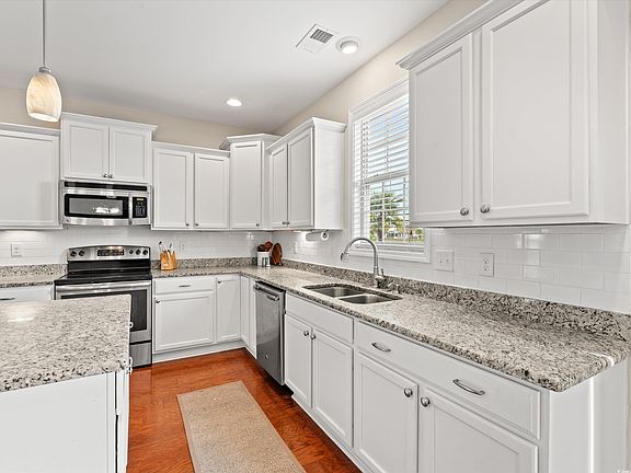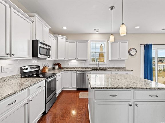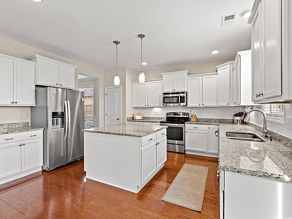 Spacious and well-appointed home located within The Highlands at Withers Preserve community in the desirable Market Common area. If you have been looking for abundant space and storage, take a peek at this house featuring five bedrooms and three full baths. This home sits on a lake front lot that provides elegant scenery and Southern tranquility. From the minute you open the front door you are greeted with hardwood floors, a gas fireplace, cathedral ceilings and natural light spilling into the oversized formal living room, you will have the sense you have found what you are looking for. But wait, there is so much more. Stepping to the back of the house you will realize the open concept kitchen, with granite countertops, stainless steel appliances and an oversized middle island and an eat in dining. The 20x14 great room is complimented with beautiful shiplap and built-in shelves. This entire space will effortlessly accommodate large family gatherings or be the backdrop to festive parties. You also have a lovely view of the newly fenced backyard and the quaint lake in the backyard. Let your imagination run wild with all the possibilities that this home offers and how you can use all the space, to include under stair and attic storage, for your needs. The first floor also includes a bedroom, full bathroom and the laundry room. Walking upstairs you will clearly see that this house has even more to boast about. There are four bedrooms including the palatial primary bedroom. A generous Jack and Jill bathroom separates two of the sizeable bedrooms providing numerous options for laying out how to make the floor plan work for you. There is even a loft-style space between all the bedrooms that offers opportunities for creative or workspaces. Open the door to the primary suite and be blown away with the extensive size including custom closets. It will surely be your own oasis and place to get away from the world. The primary also offers two large closets for all your storage and organizing needs. Not only will the house leave you speechless but imagine golf cart rides to local shopping and dining around Market Common as well a short ride to the Atlantic Ocean. Square footage is approximate and not guaranteed. Buyer responsible for verification.