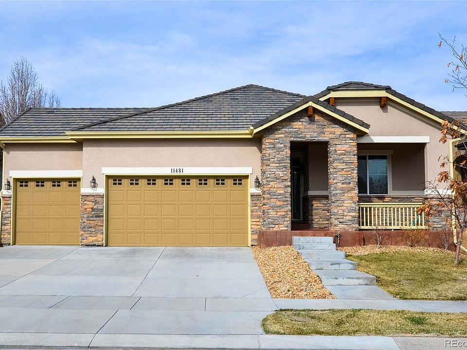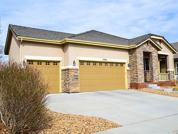 Stunning Ranch style home at Villages at Buffalo Run community. This home offers a great open floor plan with 3 bedrooms, 2 baths and a huge size of family room, gourmet kitchen with granite counter and beautiful tile backsplash, stainless steel appliances, and custom build-in refrigerator is also included, large island, Master bedroom boasts a large 5 piece en suite and a walk-in closet. a full huge unfinished basement. stucco finished exterior, and tile roof. close to park, shopping, food, DIA, and E470.